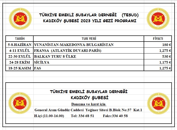 | Tarih | BİR KİŞİ TUR ÜCRETİ (TL) | İLAVE YATAK FARKI (TL) | KALINACAK MİSAFİRHANE | |